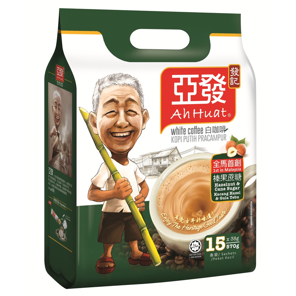 Ah Huat White Coffee Hazelnut Cane Sugar 38g X 15 Sachets Foc 2 S Shopee Singapore