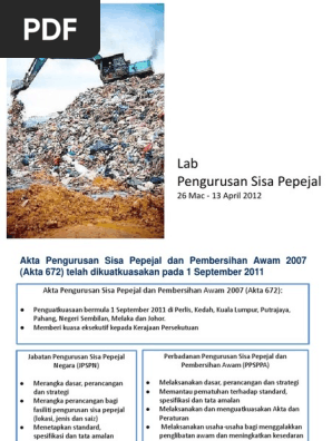 Akta Pengurusan Sisa Pepejal Dan Pembersihan Awam 2007 Akta 672 Pnmb2u