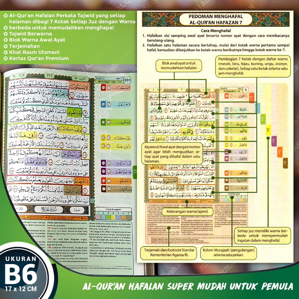 Bisa Cod Al Quran B6 Hafalan Terjemah Tajwid Warna Hafazan 7 Hc Alquran Utsmani 30 Juz Shopee Indonesia