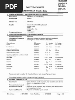 Safety Data Sheet Ambi Pur 3volution Scienceinthebox