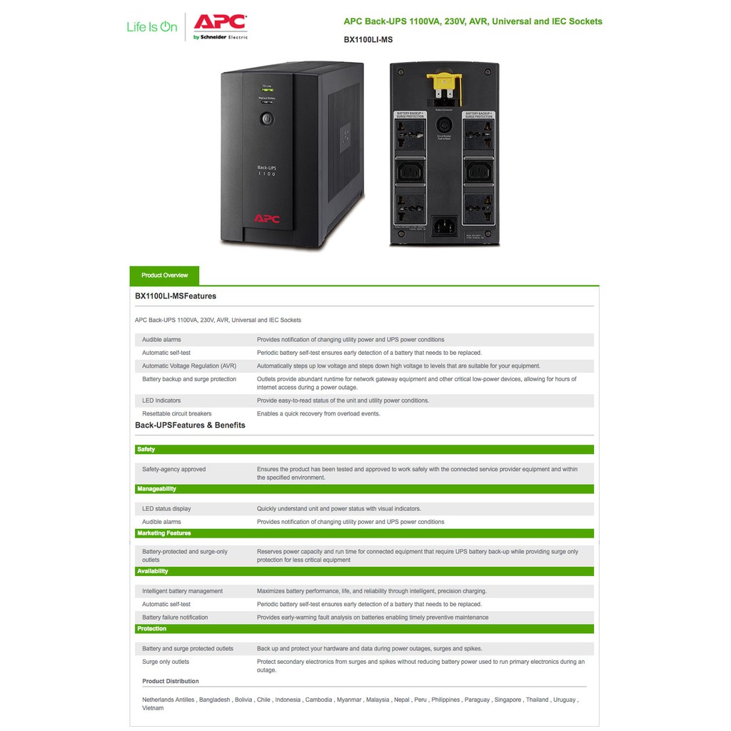 Apc Back Ups 1100va 230v Avr Universal And Iec Sockets Bx1100li Ms Battery Backup Surge Protector For Electronics And Computers Apc Ups Lazada Singapore