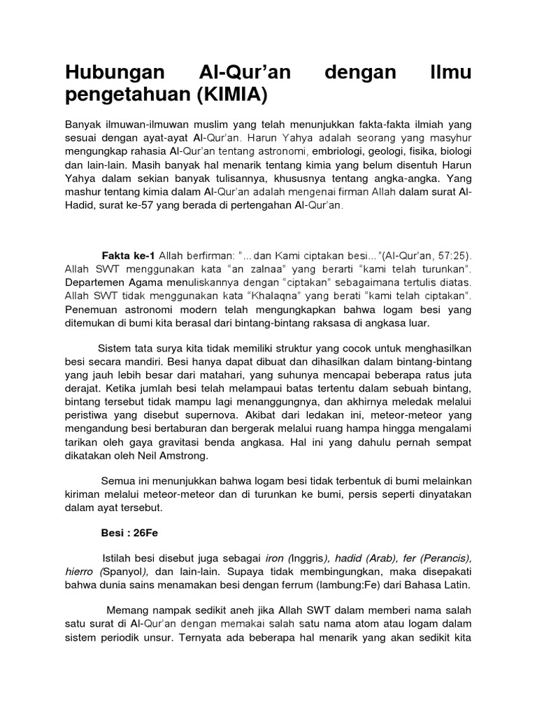 Hubungan Al Qur An Dengan Ilmu Pengetahuan Kimia