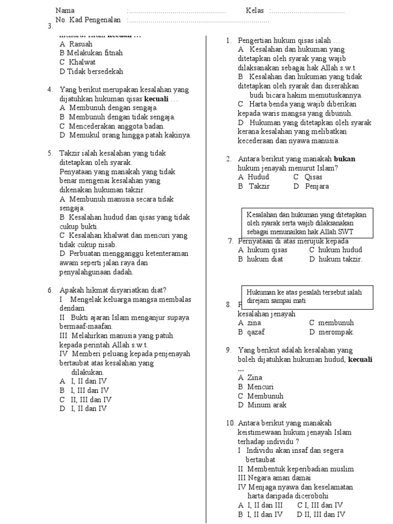 Undang Undang Jenayah Islam Exam Jun 2015 Studocu
