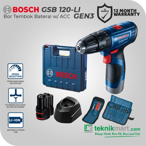 Bosch Gsb 120 Li Gen3 12volt Bor Impact Baterai Dengan Aksesories Shopee Indonesia