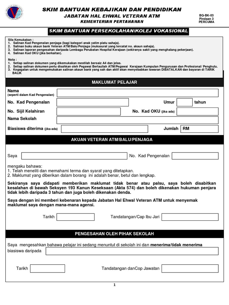 Borang Bantuan Bakti Negara Bbn Pertubuhan Tentera Tidak Berpencen Facebook