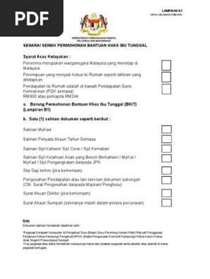 Borang Permohonan Bantuan Khas Ibu Tunggal Bkit Lampiran B1