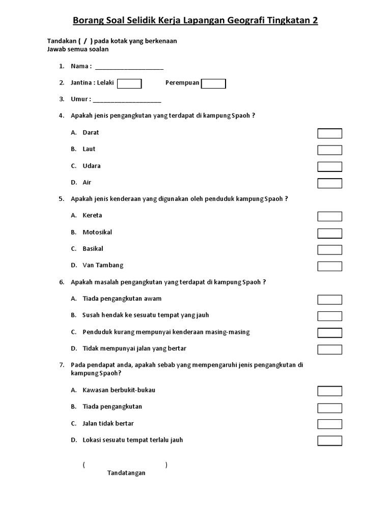 Borang Soal Selidik Kerja Lapangan Tugasan Geografi Tingkatan 3 Pengangkutan Bumi Gemilang