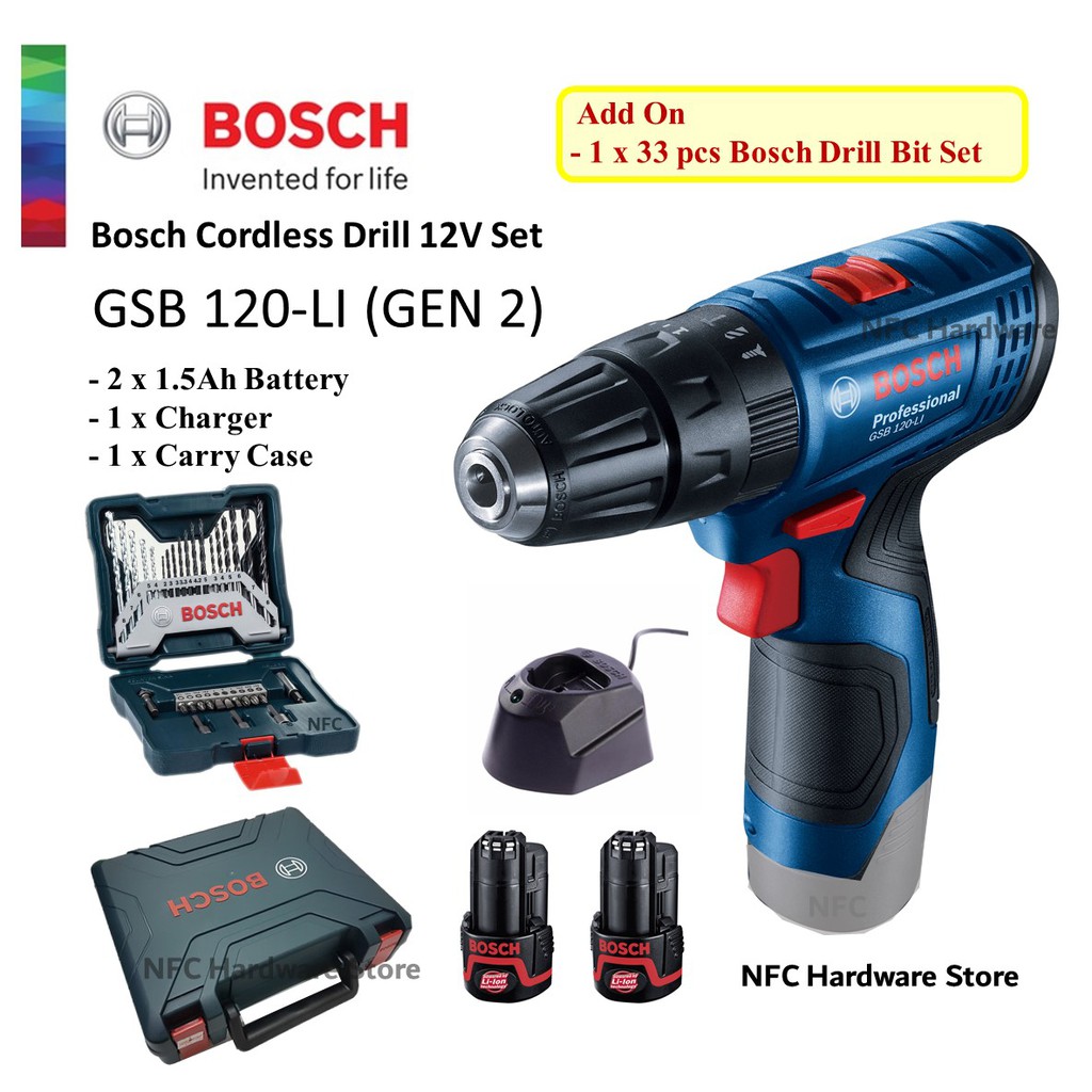 Bosch Gsr 120 Li Gen2 Cordless Driver 2 X Battery Set Shopee Malaysia