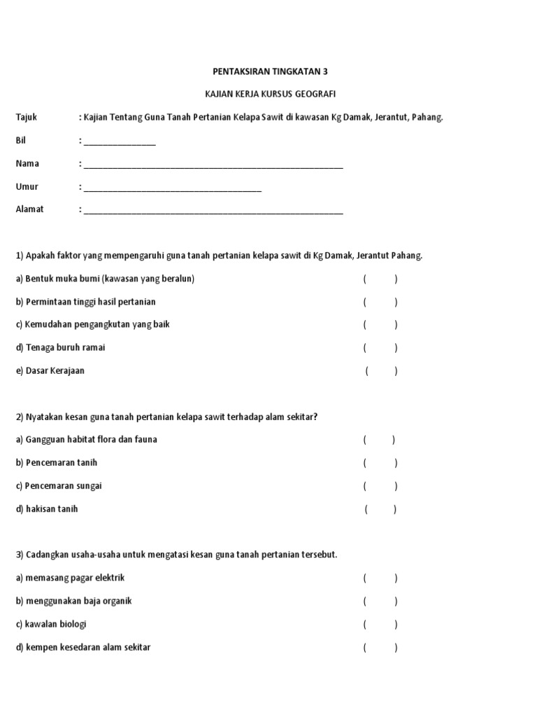 Cadangan Usaha Usaha Untuk Mengatasi Kesan Guna Tanah Kerja Lapangan Geografi Tingkatan 3 Bumi Gemilang
