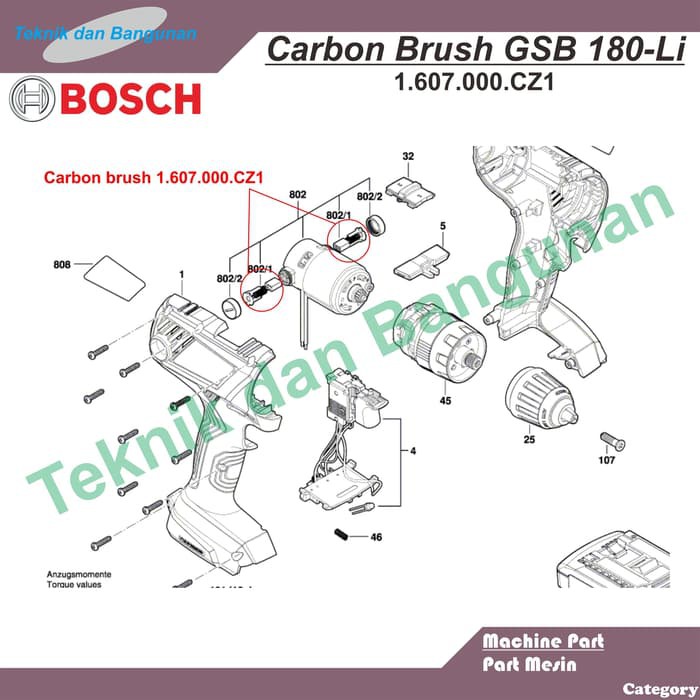 Bosch Carbon Brush Gsr Gsb 180 Li Cordless Drill Mtmachinery Shopee Malaysia