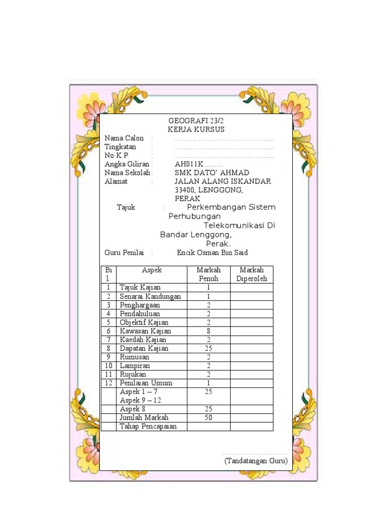 Kerja Lapangan Geografi Tingkatan 2 Docx Kerja Lapangan Geografi Tingkatan 2 Borang Soal Selidik Di Kawasan Taman Sri Manja A Maklumat Diri Responden Course Hero