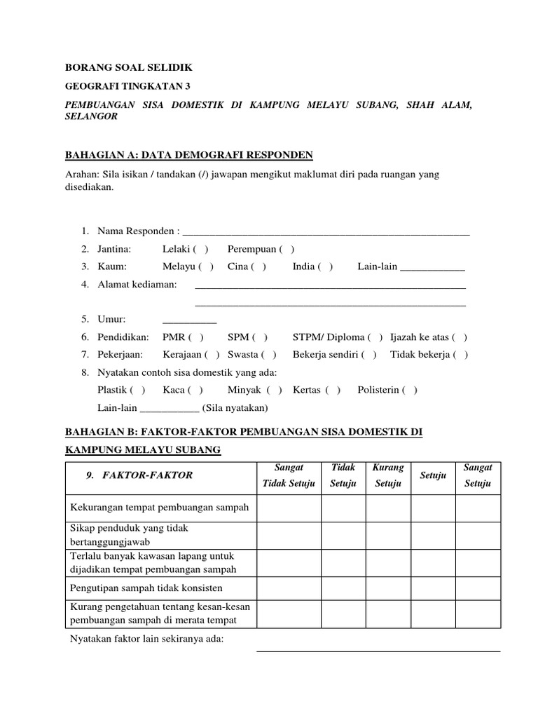 Contoh Soalan Soal Selidik Sisa Domestik A Soalan Cute766