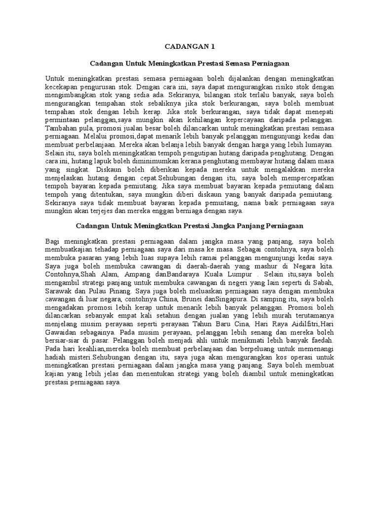 Kerja Kursus Prinsip Perakaunan Tingkatan 5 Cadangan Meningkatkan Prestasi