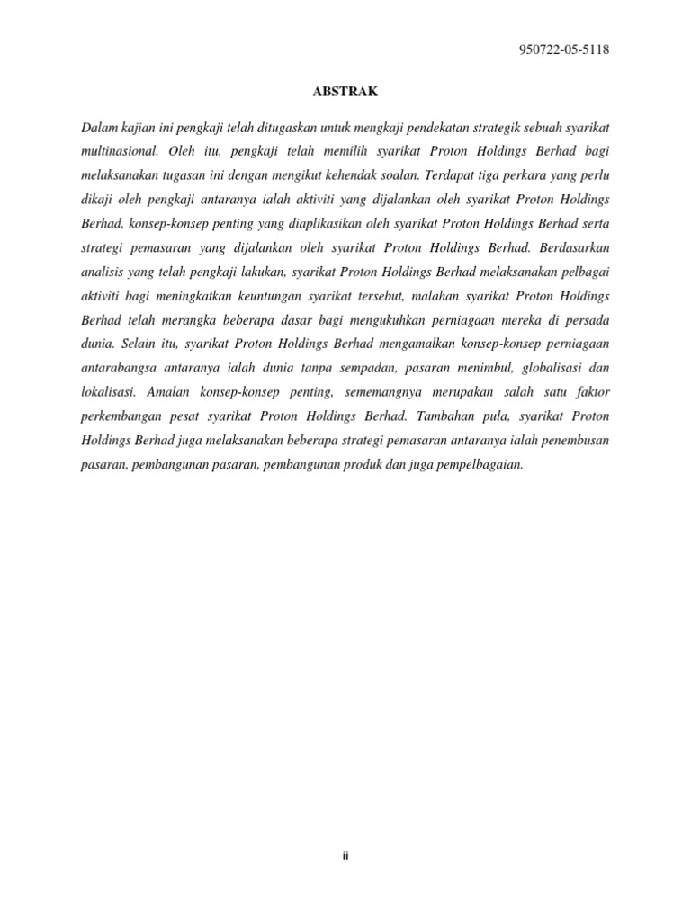 Contoh Abstrak Kerja Kursus Pengajian Perniagaan