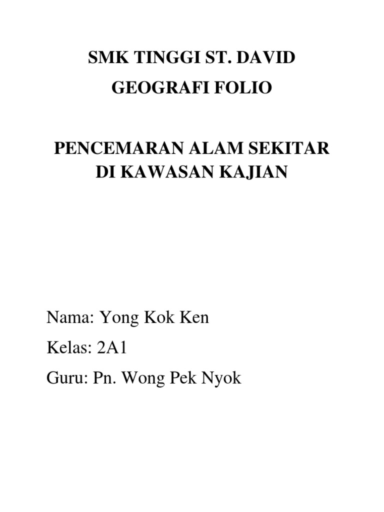 Kerja Kursus Geografi 2011 Pencemaran Alam Sekitar Tingkatan 2 Docx Document