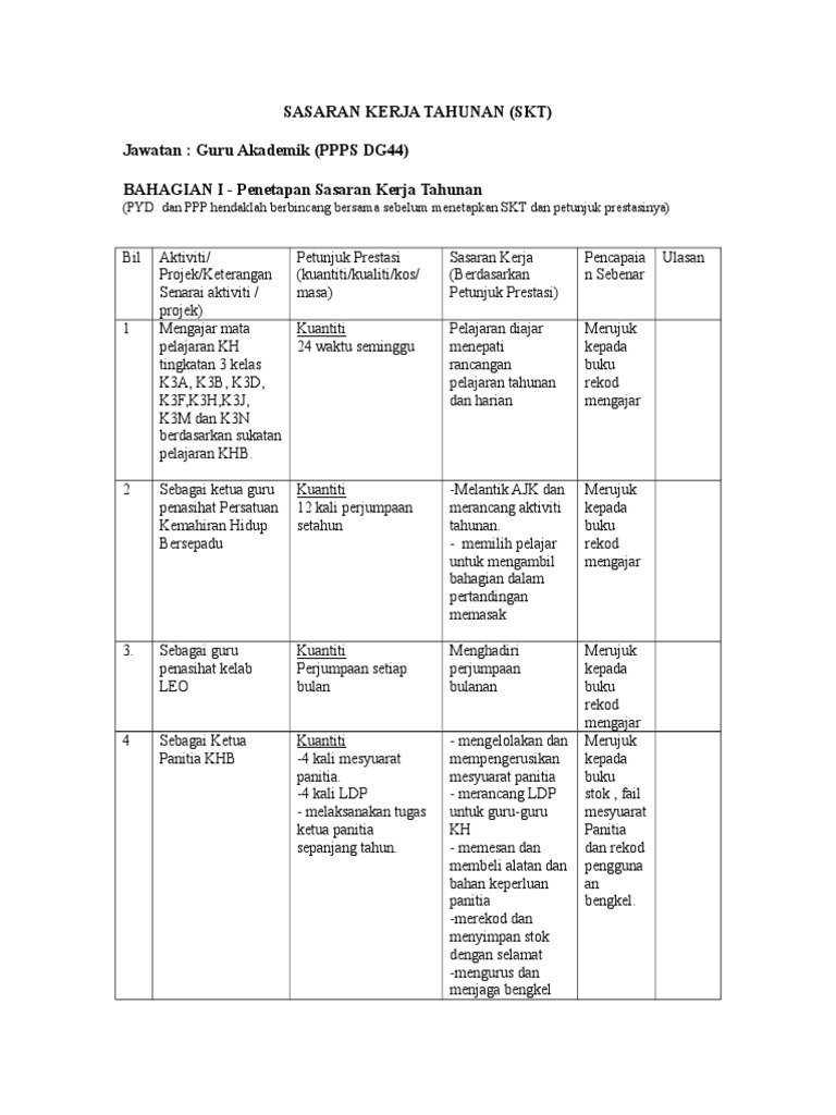 Sasaran Kerja Tahunan Skt Jawatan Guru Akademik Ppps Dg44 Bahagian I Penetapan Sasaran Kerja Tahunan