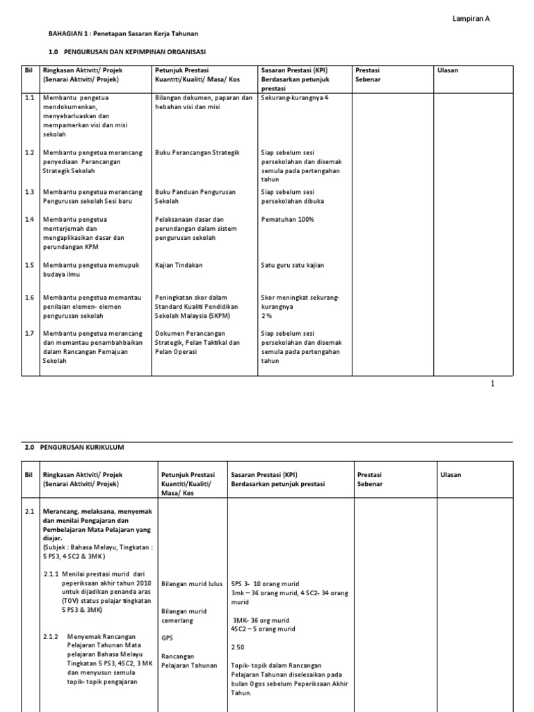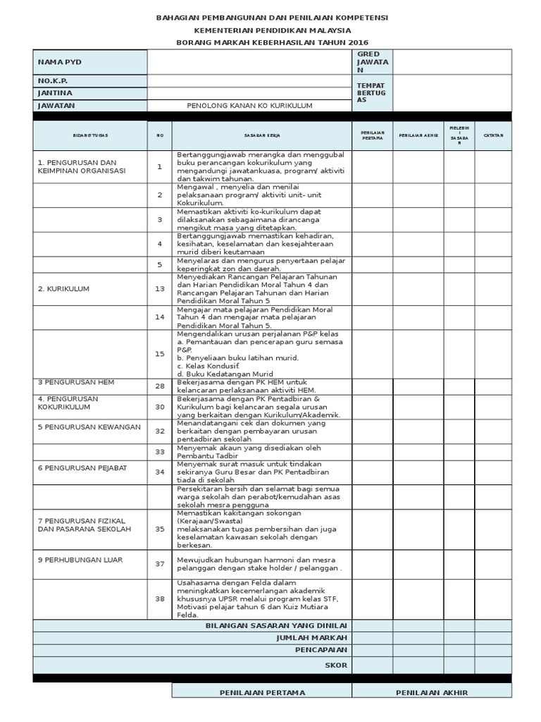 Contoh Sasaran Kerja Tahunan Guru Penolong Kanan Kokurikulum