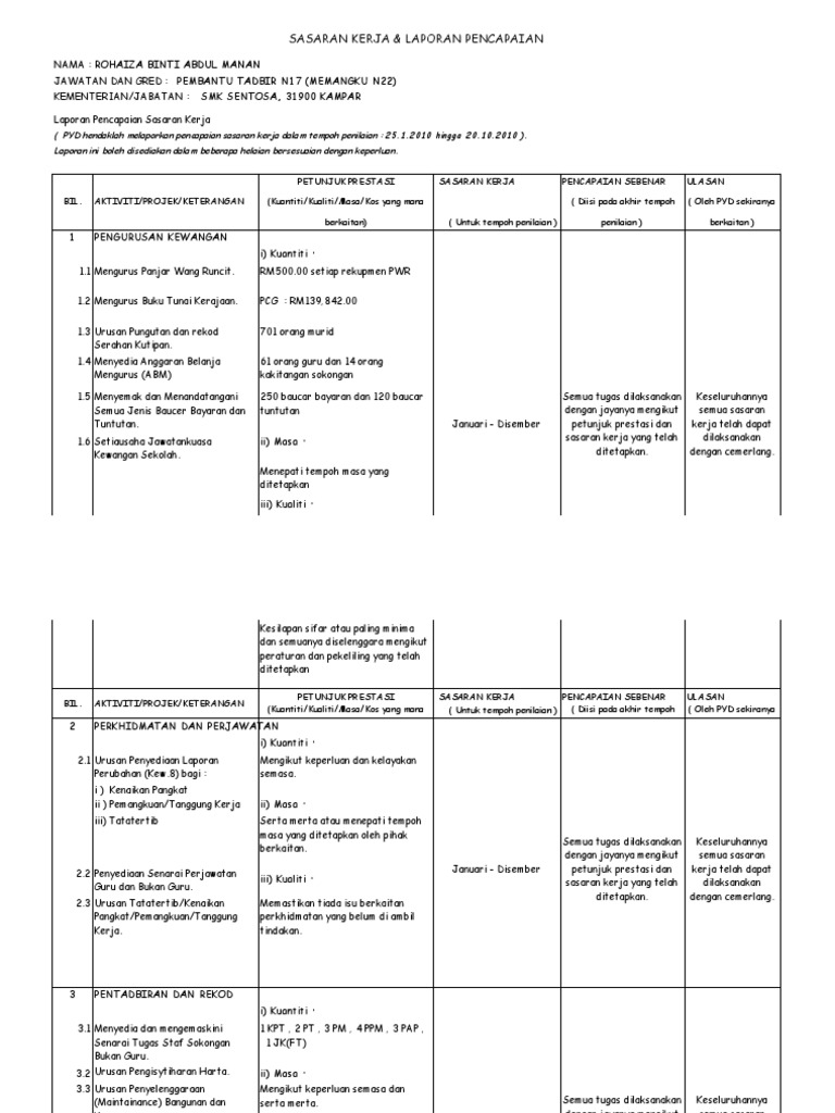 Pembantu Tadbir Contoh Sasaran Kerja Tahunan