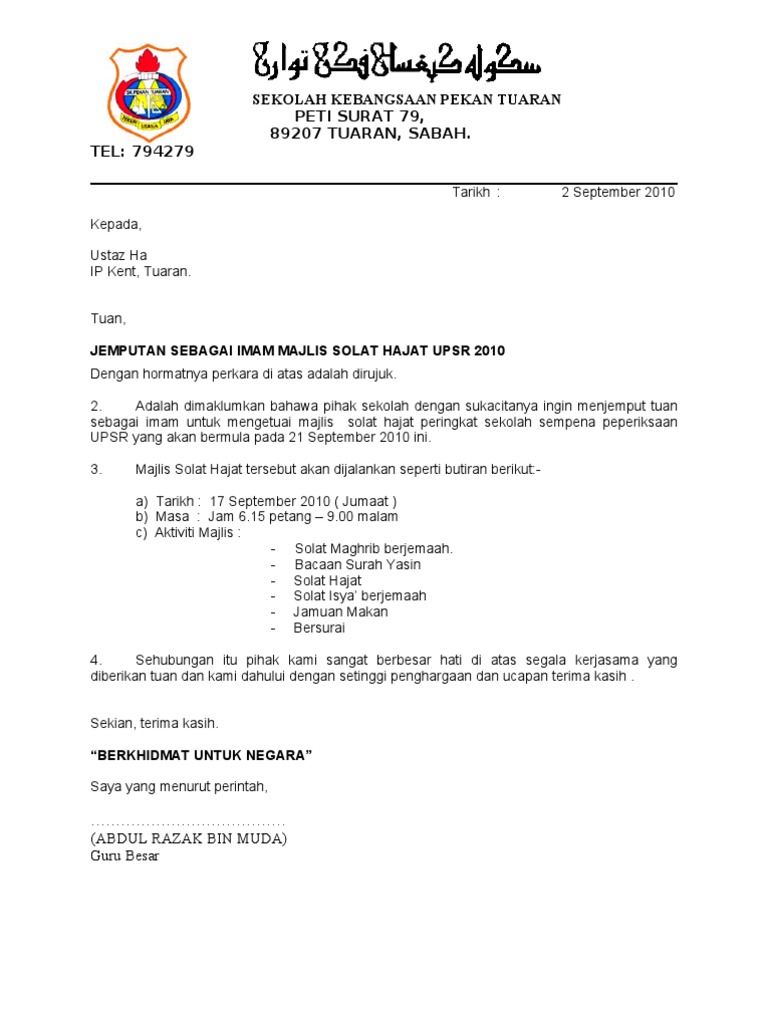 Contoh Surat Rasmi Jemputan Majlis Contoh Kono