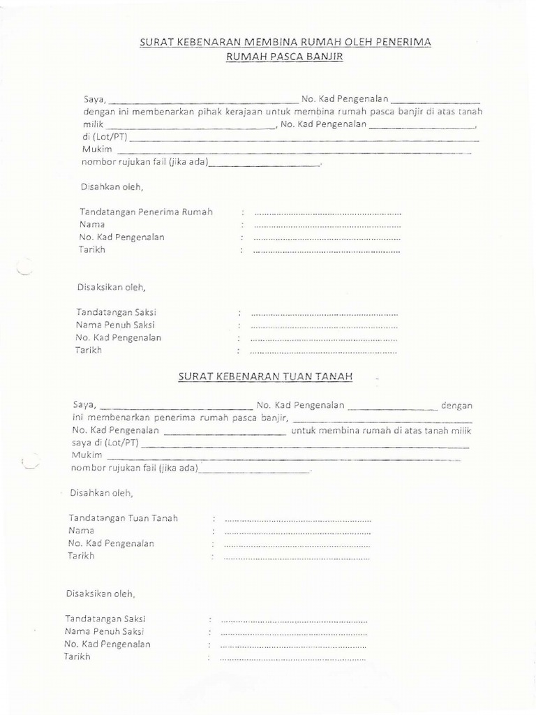 Contoh Surat Kebenaran Tuan Tanah Untuk Membina Rumah