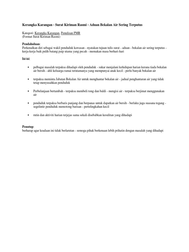 Surat Kiriman Rasmi Aduan Gangguan Bekalan Air Resepi Book B