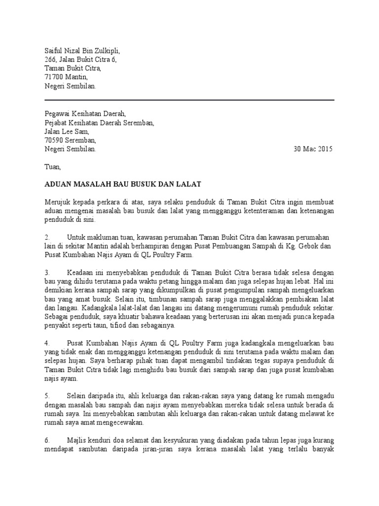 Contoh Surat Aduan