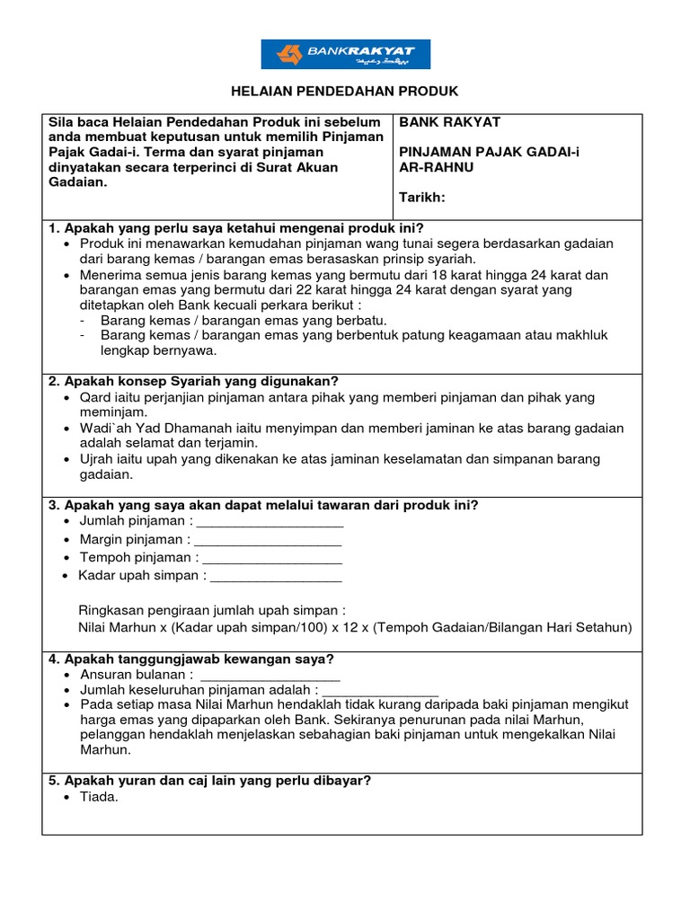 Contoh Surat Pajak Gadai Ar Rahnu
