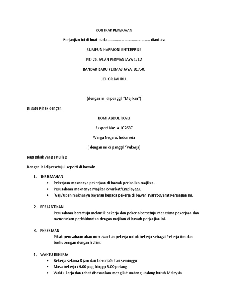 Contoh Surat Perjanjian Antara Majikan Dan Pekerja Malaysia