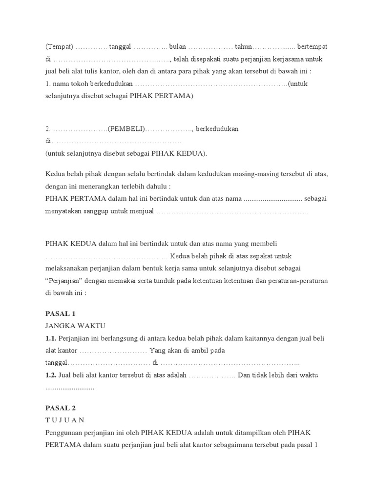 Contoh Surat Perjanjian Jual Beli Alat Tulis Kantor