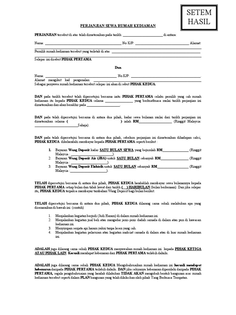 Surat Perjanjian Sewa Rumah Di Malaysia Surat Huruf