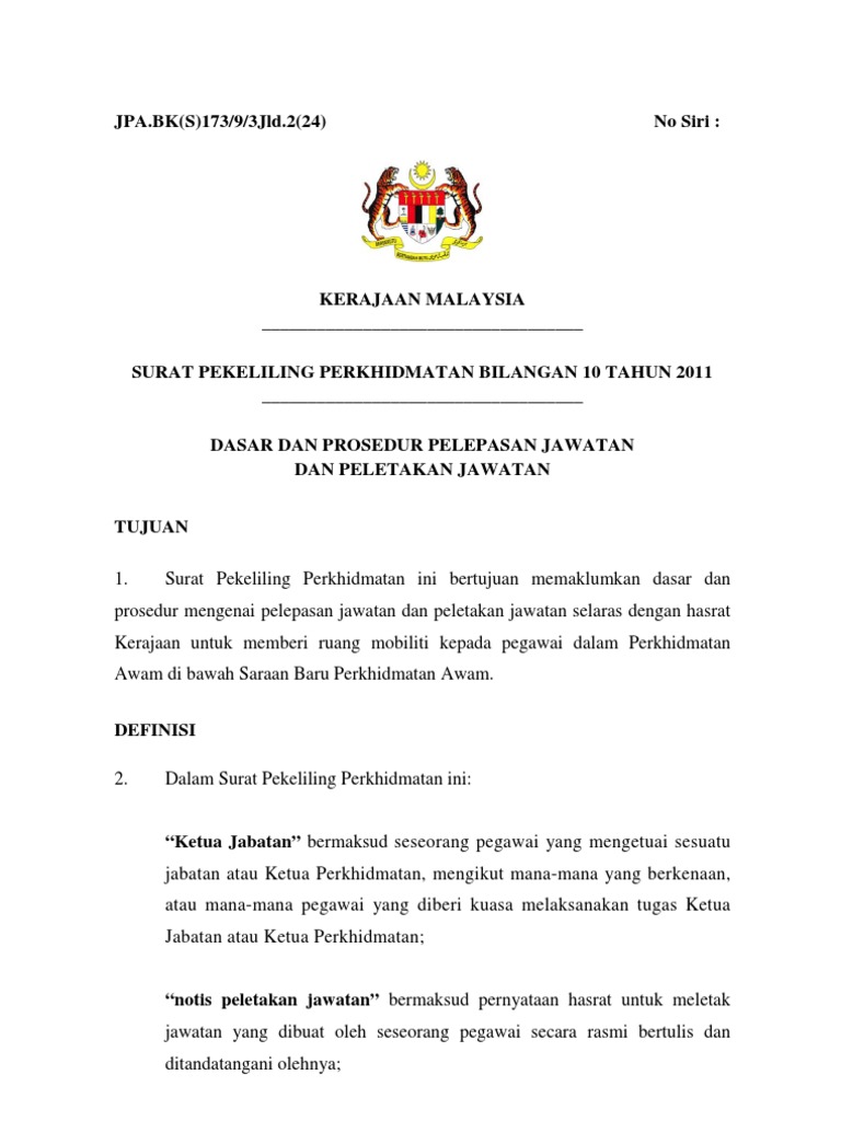 Spp102011 Dasar Dan Prosedur Pelepasan Jawatan Dan Peletakan Jawatan