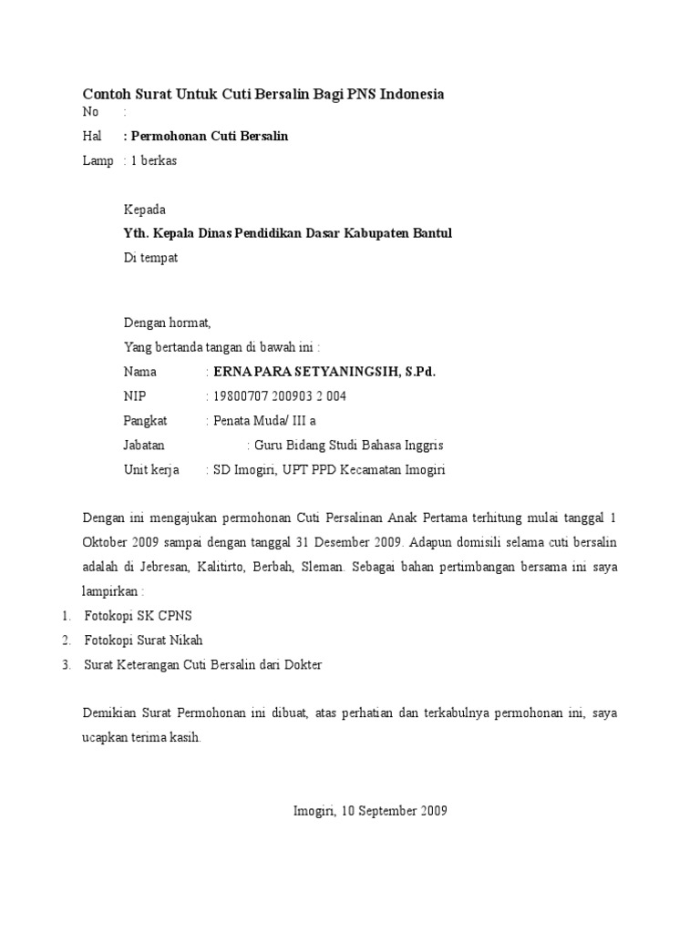 Contoh Surat Untuk Cuti Bersalin Bagi Pns Indonesia