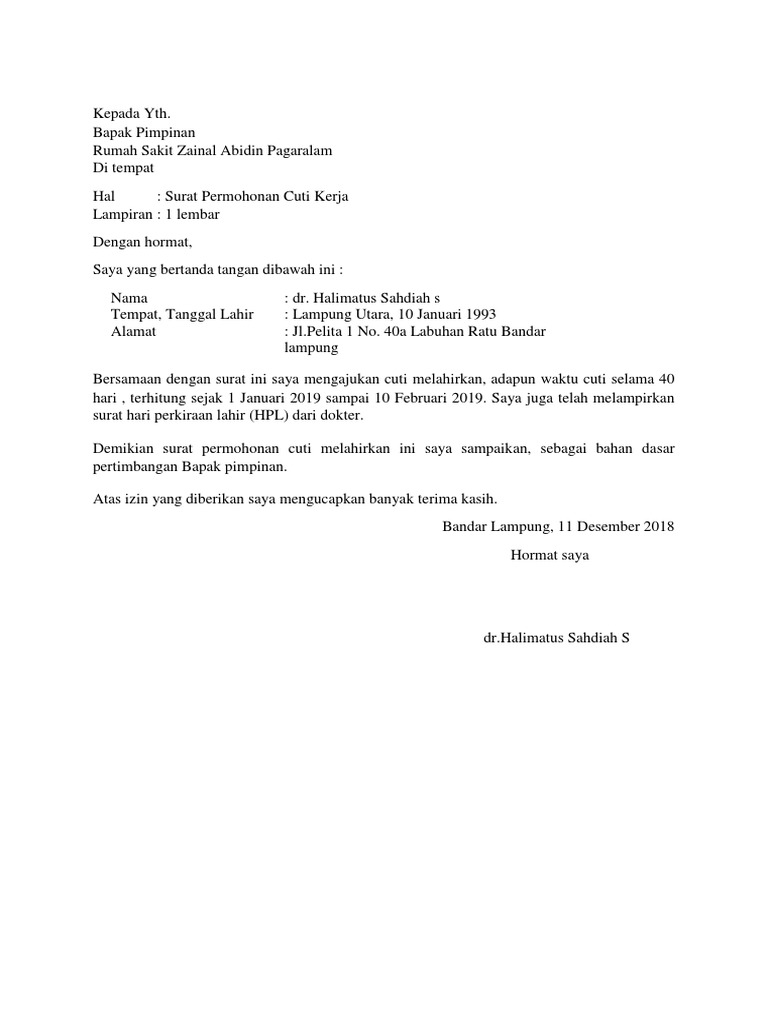 Contoh Surat Cuti Melahirkan Pegawai Swasta Contoh Lif Co Id