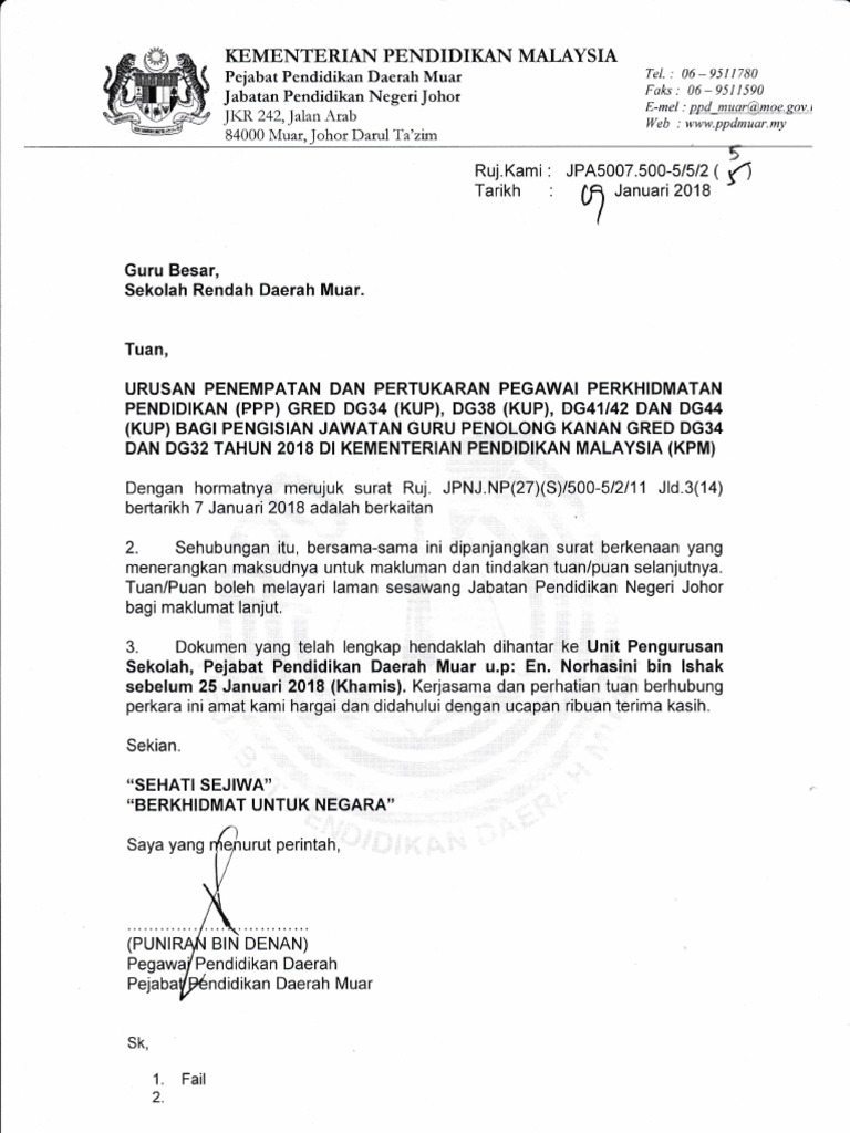 Surat Permohonan Jawatan Guru Penolong Kanan J Kosong W