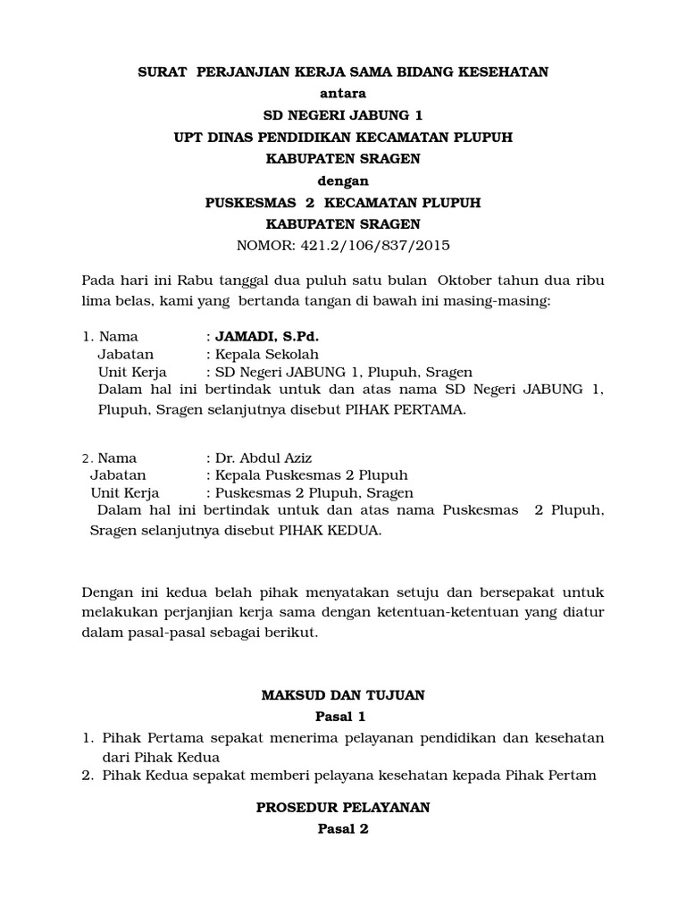 Contoh Surat Mou Kerjasama Sekolah Dengan Puskesmas Id Lif Co Id