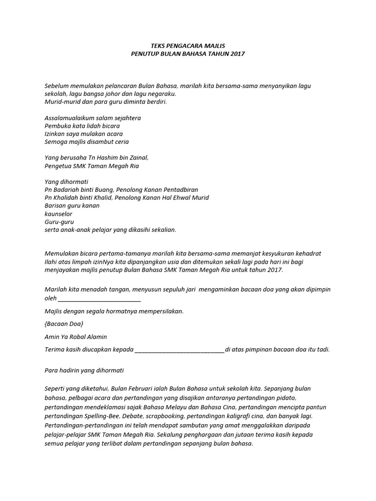 Teks Pengacara Majlis Penutup Bulan Bahasa
