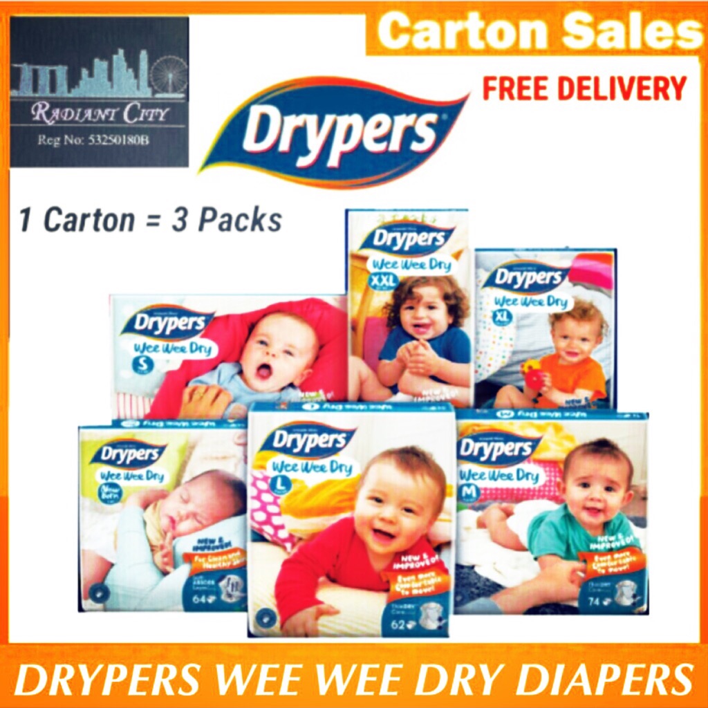 Bundle Of 3 Drypers Wee Wee Dry Diapers Carton Deal S M L Xl Xxl Free Delivery Shopee Singapore