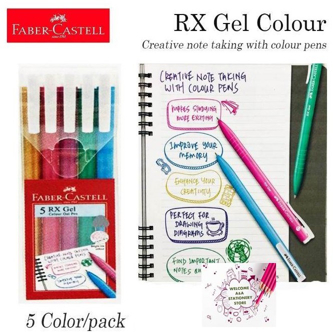 Faber Castell Rx Gel Colour Pen 0 7mm Rxgel Green Gold Purple Turquoise Pink Pen Colourful Color Faber Castell Lazada