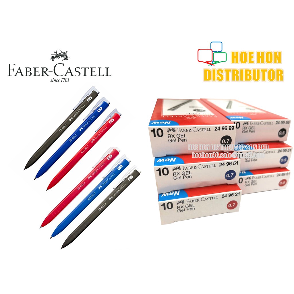 Faber Castell Retractable Rx Gel Pen 0 5mm 0 7mm Black Blue Red Box Of 10pcs