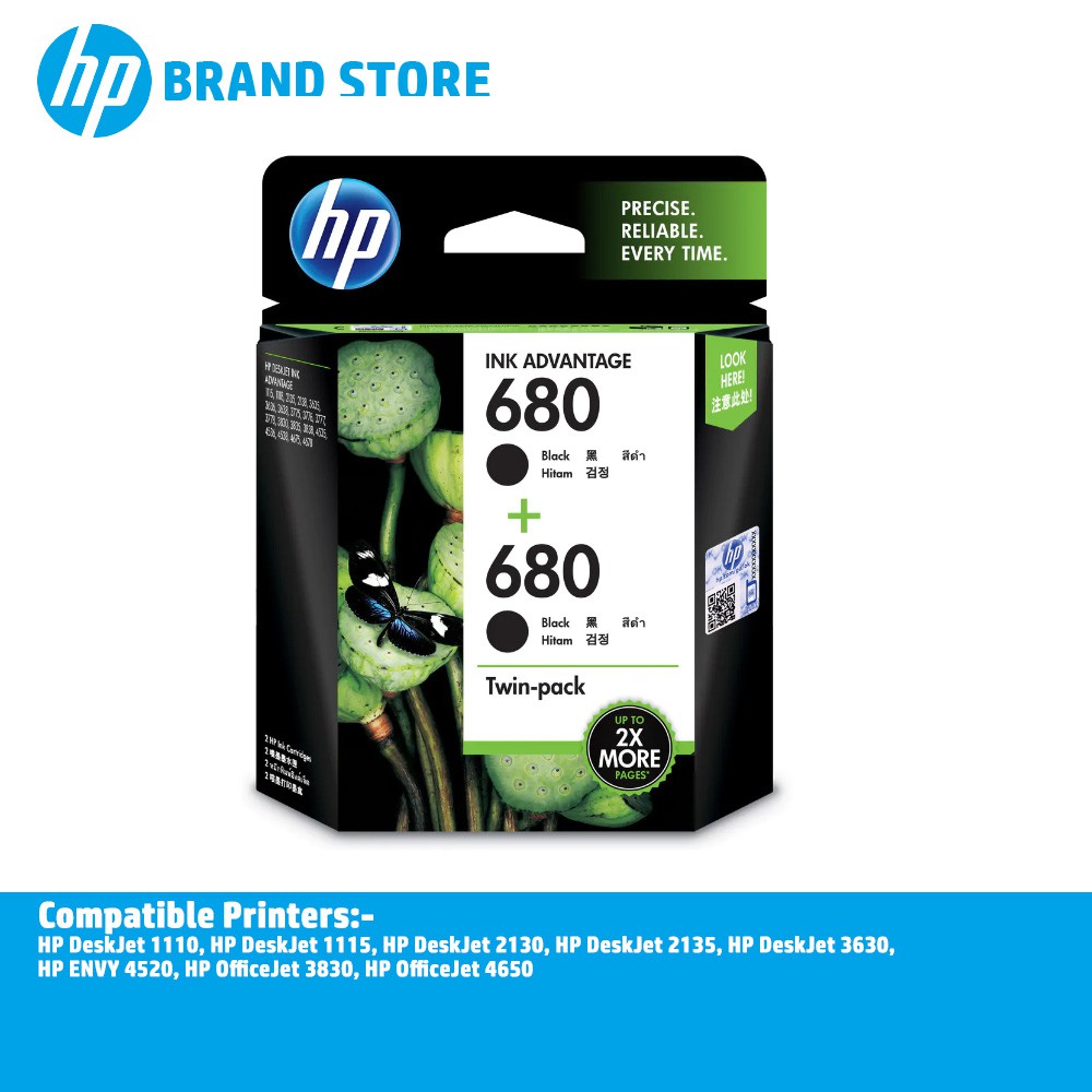 Hp 680 Black Hp680bk 680bk X4e79aa Twin Pack Original Ink Advantage Cartridges X4e79aa Shopee Singapore