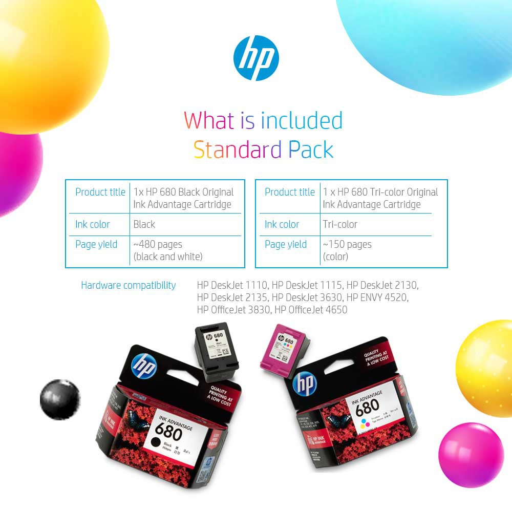 Hp 680 Ink Advantage Cartridge Black Tri Colour Lazada