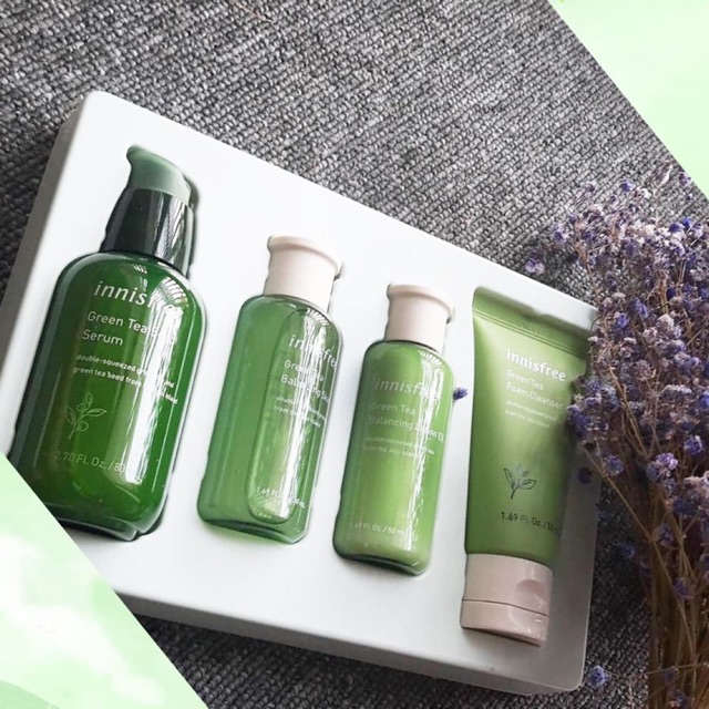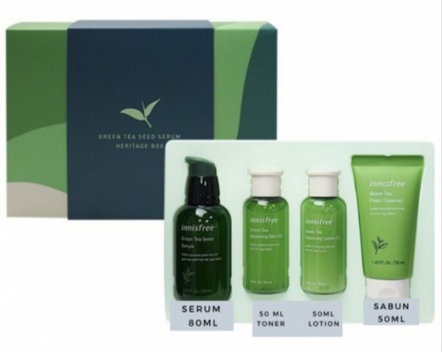 Set 4 Mon Dưỡng Da Innisfree Green Tea Seed Serum Heritage Box G658 Chinh Hang 5321