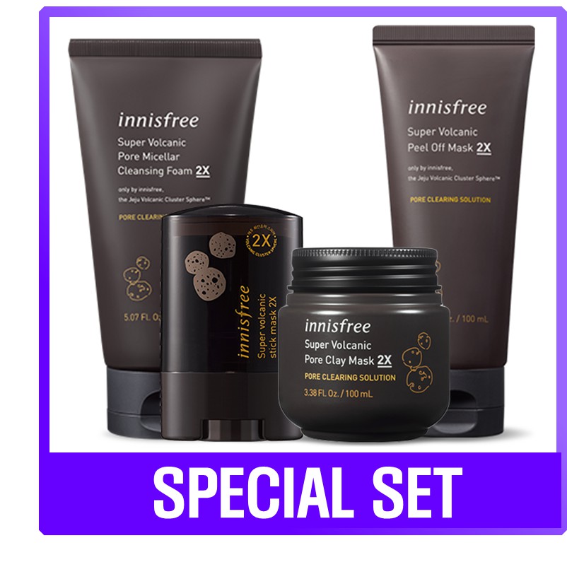 Innisfree Super Volcanic Set Stick Mask 2x Pore Clay Mask 2x Pore Micellar Cleansing Foam 2x Peel Off Mask 2x 100ml Shopee Singapore