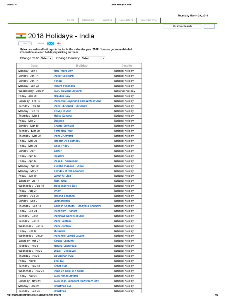 Pdf List Of Public Holidays Of India In 2020 Pdf Download Instapdf