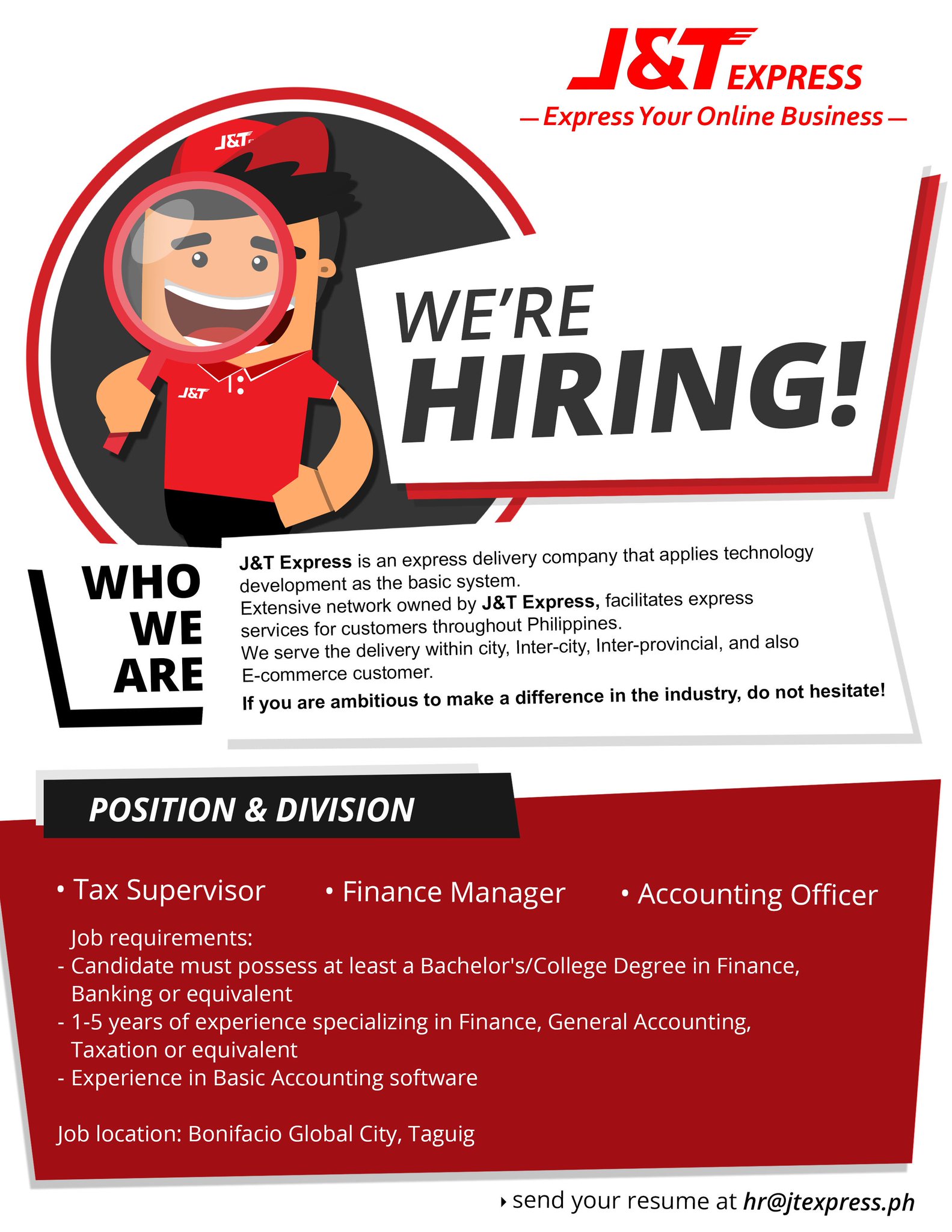 J T Express Philippines On Twitter Are You Currently Looking For The Perfect Job Calling All Finance Banking Accounting Graduates We Are Hiring Join Our J T Express Team Now Send Your Resume At