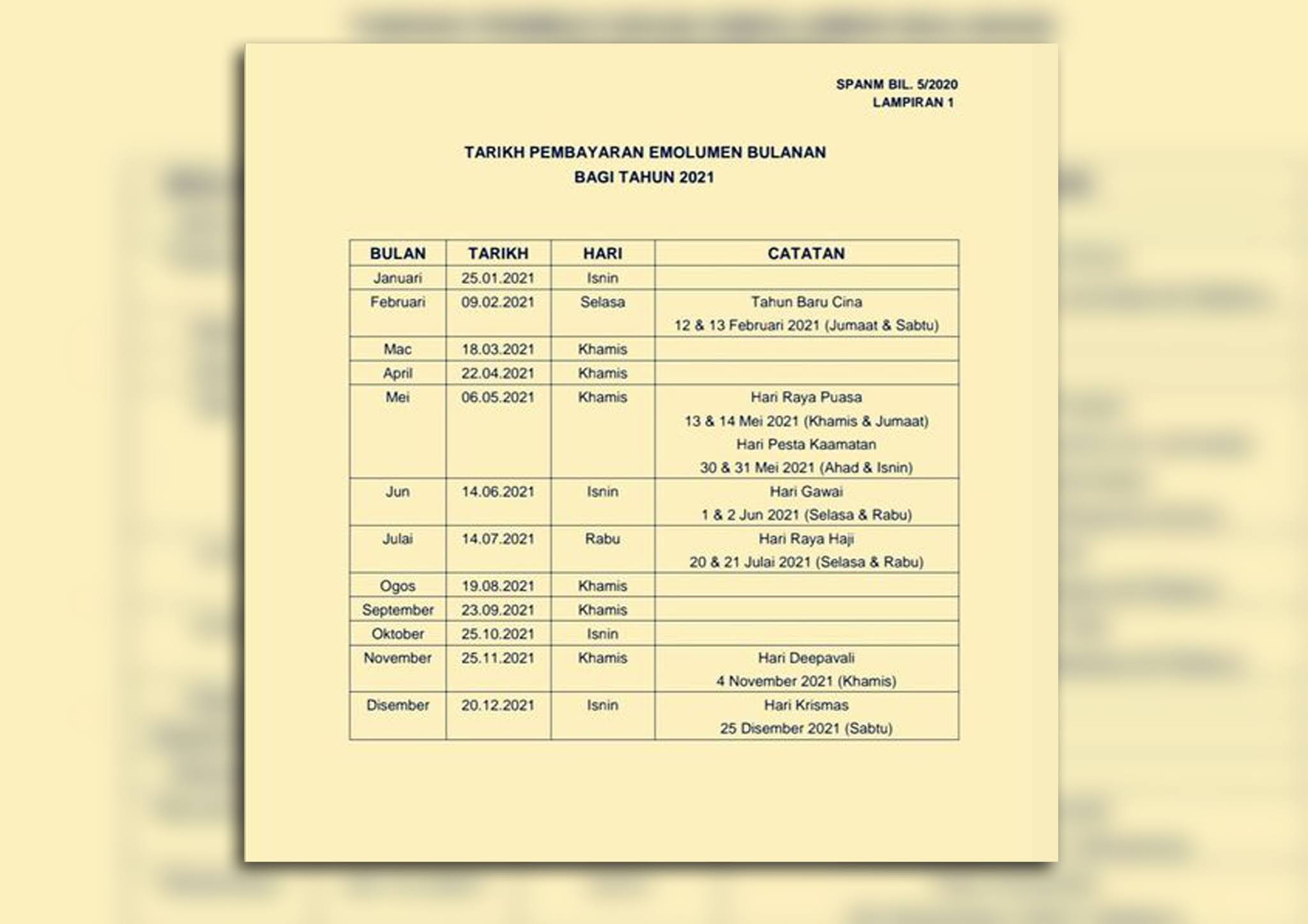 Maksyeh Tarikh Jangkaan Pembayaran Gaji Penjawat Awam Bagi Tahun 2021 Malaysia