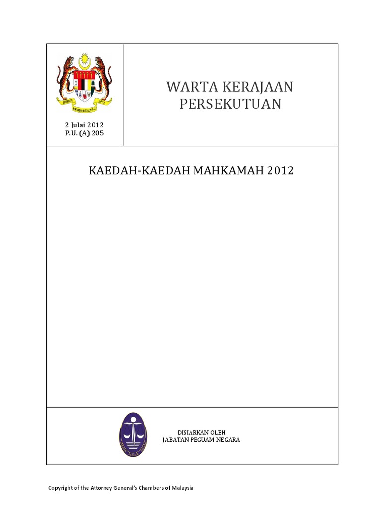 Kaedah Kaedah Mahkamah 2012 Pu A 205 2012 Hingga 15hb Julai 2019 Shopee Malaysia