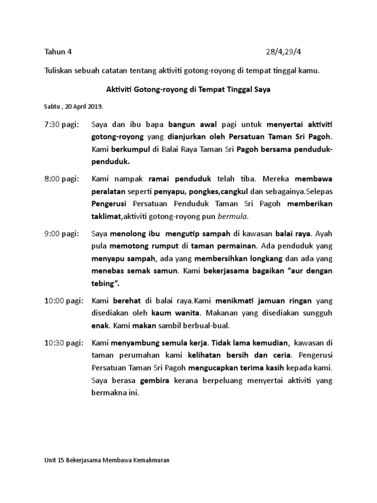 Karangan Catatan Gotong Royong Di Kawasan Perumahan