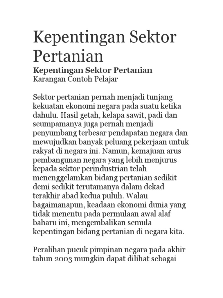 Karangan Pendek Kepentingan Sektor Pertanian Di Malaysia
