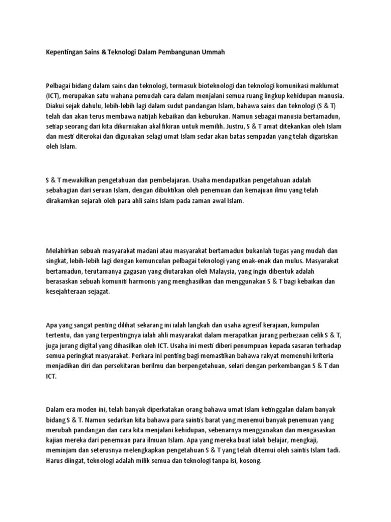 Tulis Sebuah Karangan Bertajuk Kepentingan Sains Dan Teknologi